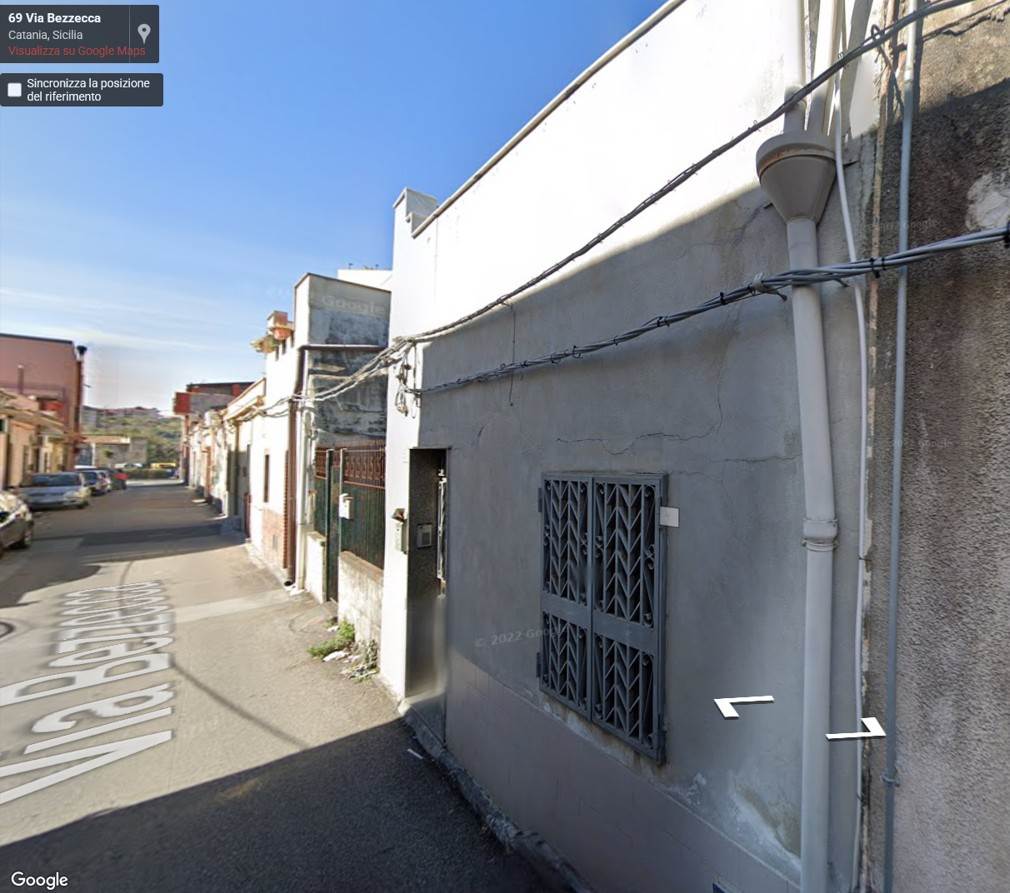 Casa Terrana in Catania, con ingresso dal civico 52 della via Bezzecca, composta da tre vani (ingresso-disimpegno, camera da letto e locale soggiorno), cucina, servizi, con annesso cortile pertinenziale dal quale tramite una scala metallica di accede alla terrazza di copertura.